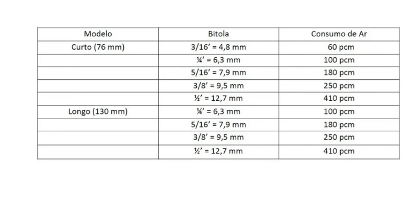 Bico de Jato com wídea interna em Tungstênio ( Metal Duro) com formato venturi que proporciona maior velocidade e precisão na operação do jateamento. Sua função é extremamente importante, tanto que o consumo de ar de acordo com a bitola do bico é o que vai determinar o tipo de compressor a ser utilizado (se forem utilizados 2 bicos na mesma máquina, deve-se dobrar a quantidade de ar que será consumido para poder dimensionar o compressor). Apresenta-se nos seguintes tamanhos:
