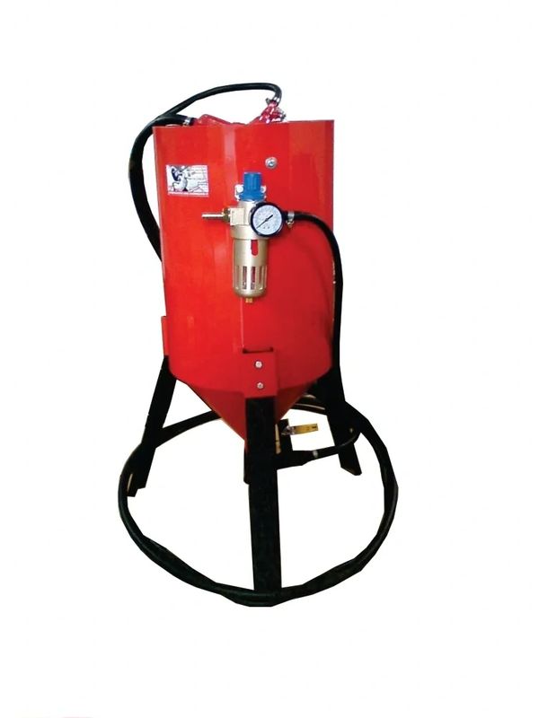 Podendo empregar toda gama de abrasivos, como: pó de quartzo, óxido de alumínio, micro esfera de vidro, etc.